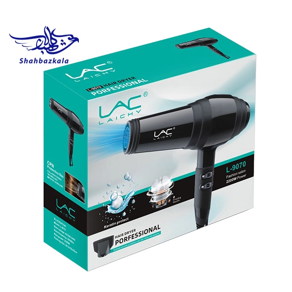 Laichy L-9070 با توان 2200 وات و المنت سرامیک تورمالین، باد قوی و فناوری یون، خشککردن سریع و کنترل کامل روی حالت مو را فراهم میکند.